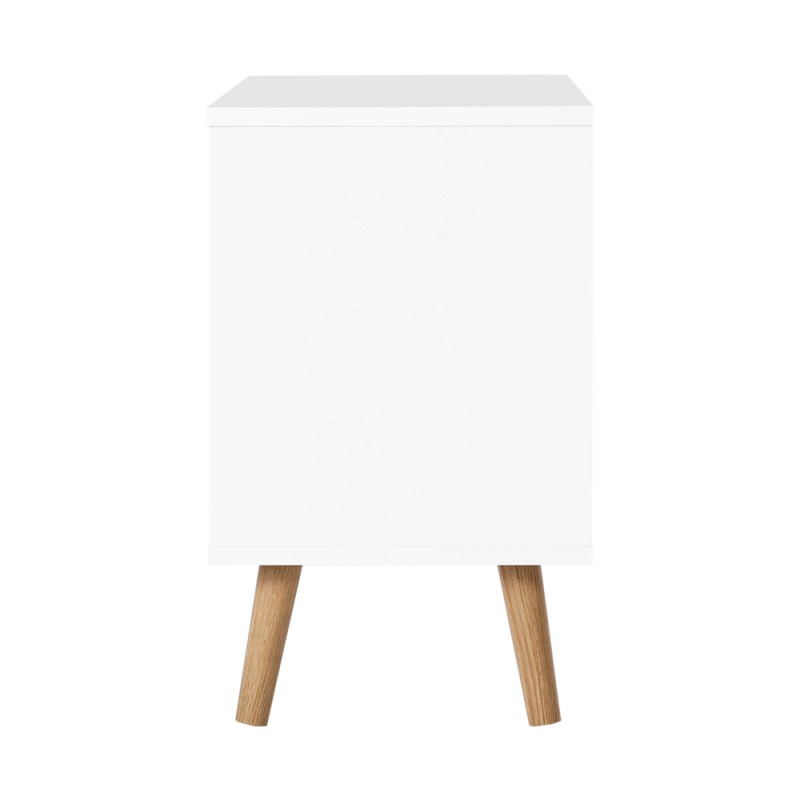 Discover the perfect blend of Scandinavian style and vintage charm with the Artiss Boden Bedside Table. Crafted from quality particle board with a smooth paper veneer finish, this table is a chic addition to any room. Its splayed legs offer a unique touch, while the two spacious drawers with anti-rust slides provide ample storage. Featuring air gap handles and a reinforced structure, it's as functional as it is stylish. Easy to clean and assemble, it's the ideal choice for modern living.