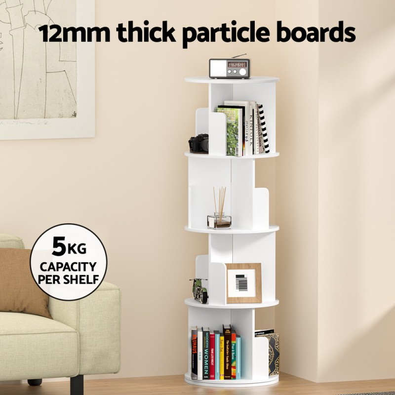 Keep your space chic and organised with the Artiss Edie Display Shelf. Featuring four tiers of rotating shelves, it’s perfect for showcasing books, art, or trinkets. Each tier holds up to 5kg and swivels 360 degrees for easy access. With round edges for safety and a sleek white finish, it's both stylish and practical. Ideal for homes, classrooms, or cafés. Easy to clean and assemble, this versatile piece fits seamlessly into any room. Enjoy a flexible, timeless display with Artiss.