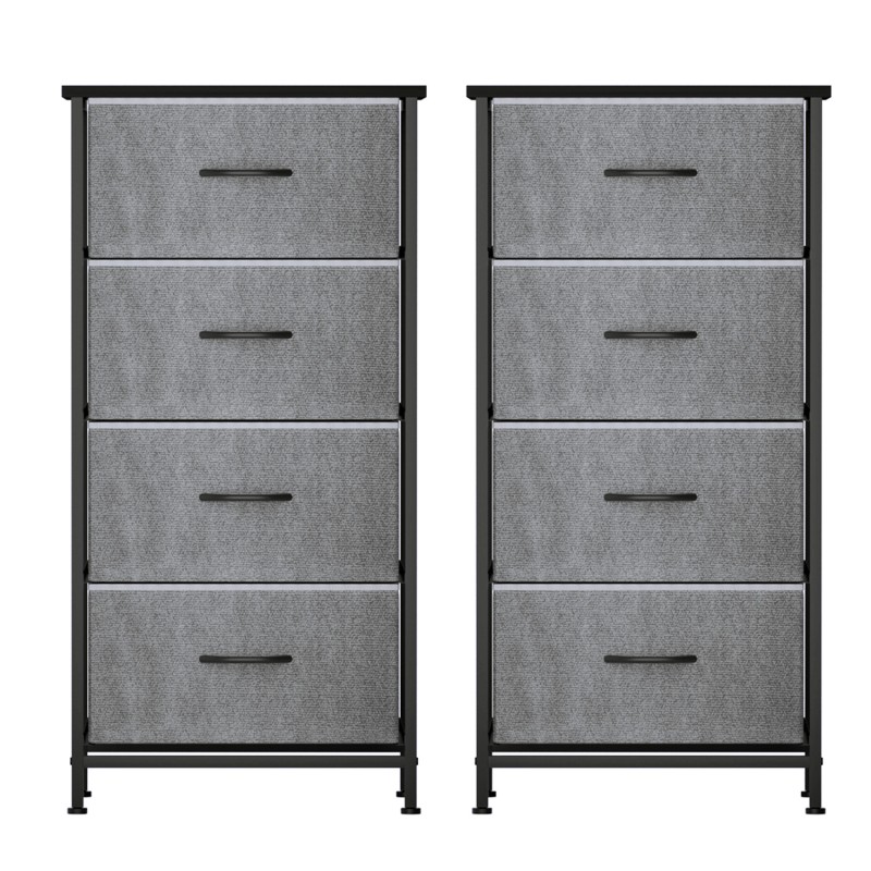 The Artiss Set of 2 Chest of 4 Drawers Storage Dresser Tallboy in Grey is a sophisticated blend of style and practicality, perfect for any room needing extra storage. Each unit features four spacious drawers with a breathable non-woven fabric lining, ideal for organising clothes or essentials. The sturdy MDF tabletop, supported by a durable metal tube frame, offers a sleek surface for decorative items. Equipped with smooth ABS handles, adjustable plastic feet for stability, and a wall attachment for safety, this piece is both versatile and secure. Its high weight capacity and easy maintenance make it a modern, convenient addition to your home.