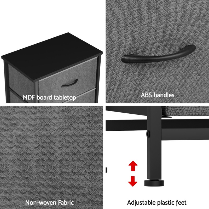 The Artiss Chest of 4 Drawers Storage Dresser Tallboy in Grey delivers modern style and everyday convenience to any space. Featuring four spacious drawers with breathable non-woven fabric lining, a sturdy MDF tabletop, and a durable metal tube frame, it offers ample storage and lasting durability. Smooth ABS handles, adjustable plastic feet, and a secure wall attachment ensure safety and ease of use. With high weight capacity, easy assembly, and low-maintenance surfaces, this versatile unit is perfect for bedrooms, living rooms, or anywhere extra storage is needed.