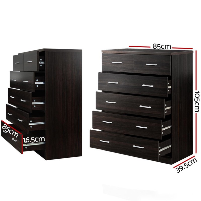Introducing the Artiss 6-Drawer Tallboy in ANDES Walnut, a perfect blend of style and functionality for your home. Crafted from high-density particle board with a sleek melamine finish, this tallboy features six spacious drawers with elegant plastic handles and smooth metal runners for effortless access. Its contemporary design and flawless paper finish with PVC edging ensure it complements any decor. Easy to assemble and offering ample storage, this modern classic is a must-have for any room.