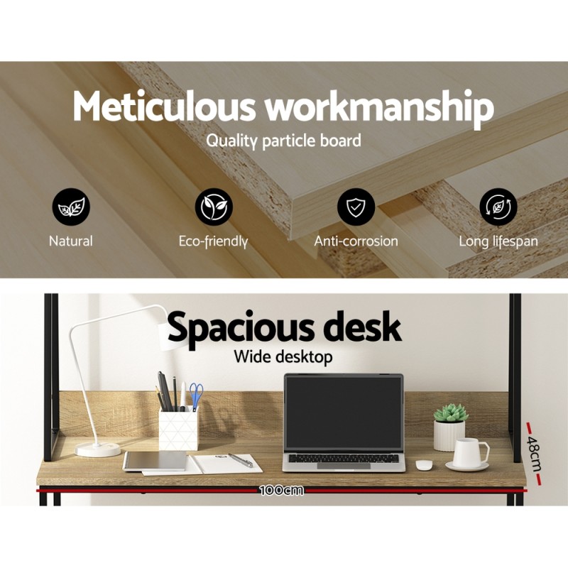 Transform your workspace with the sleek and practical Artiss Computer Desk, perfect for compact spaces. Crafted from 12mm thick particle board and a robust powder-coated steel frame, this desk offers a wide desktop, top partitioned shelf, and extra under-desk storage. With built-in cable management and anti-slip feet, it ensures a tidy and stable setup. Ideal for home offices or study rooms, its industrial design and easy assembly make it a must-have for enhancing productivity.