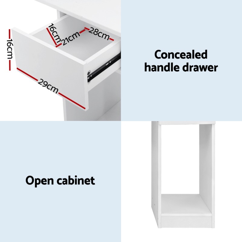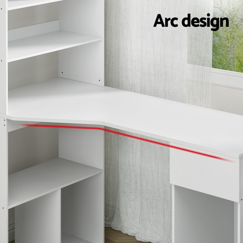 Meet the Artiss Computer Desk, a sleek and efficient addition to your home or office. This versatile piece in crisp white features a spacious 5-tier open shelving unit, perfect for organising books and files. The desk, crafted from sturdy 15mm particle board, offers a generous workspace and includes a roomy drawer with anti-rust runners and a dedicated spot for your tower computer. Ideal for small spaces, this stylish 2-in-1 workstation is easy to assemble and built to last.