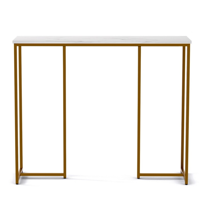Elevate your interior with the Artiss Console Table Marble Effect in White & Gold. This sleek, modern console table combines functionality with style, making it an ideal addition to homes, salons, cafés, and studios. Its space-saving design fits perfectly in narrow hallways or entryways, offering a sturdy metal frame that supports up to 50kg. The elegant marble finish tabletop is both easy to clean and maintain, providing a sophisticated platform for decor, essentials, or display. Perfect as a hallway table, side table, or entryway console, it seamlessly blends into any decor.