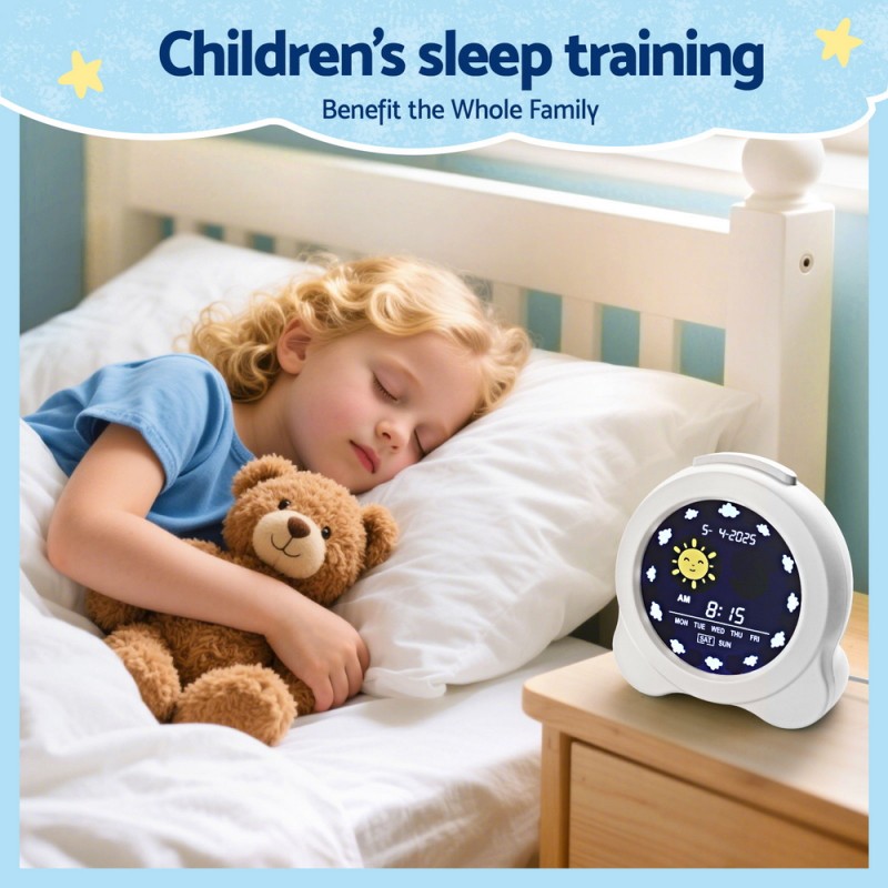 Empower your child’s sleep independence with the Artiss 3.8" Digital Day Clock Calendar Alarm. Designed for young learners, this clever bedside clock features a large, easy-to-read LCD, cheerful day/night icons, and soothing nature sounds to make mornings and bedtimes calm and fun. The dual-alarm function, snooze option, and sleep training features help your child transition confidently from crib to big-kid bed, while adjustable brightness and volume levels ensure comfort through the night.