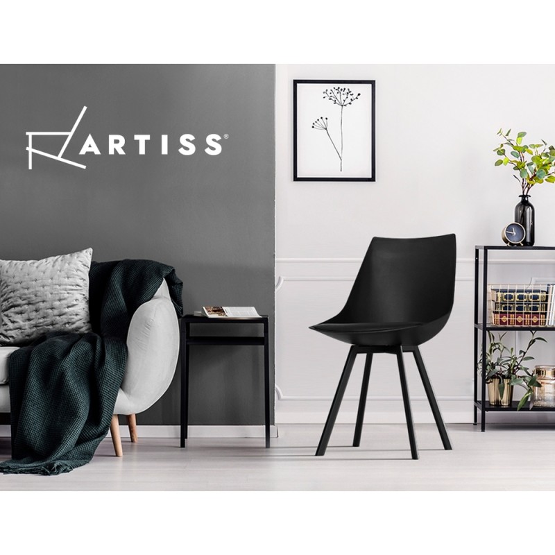 Elevate your dining experience with the Artiss Dining Chairs Set of 2. Designed for comfort and style, these chairs feature plush cushioned seats and back support, sleek PP construction, and sturdy steel legs with anti-slip feet pads for stability and floor protection. With an ultra-modern look in classic black, they seamlessly blend into your dining, study, or living space. Boasting a 150kg weight capacity and easy assembly, these chairs are the perfect blend of elegance, durability, and versatility.