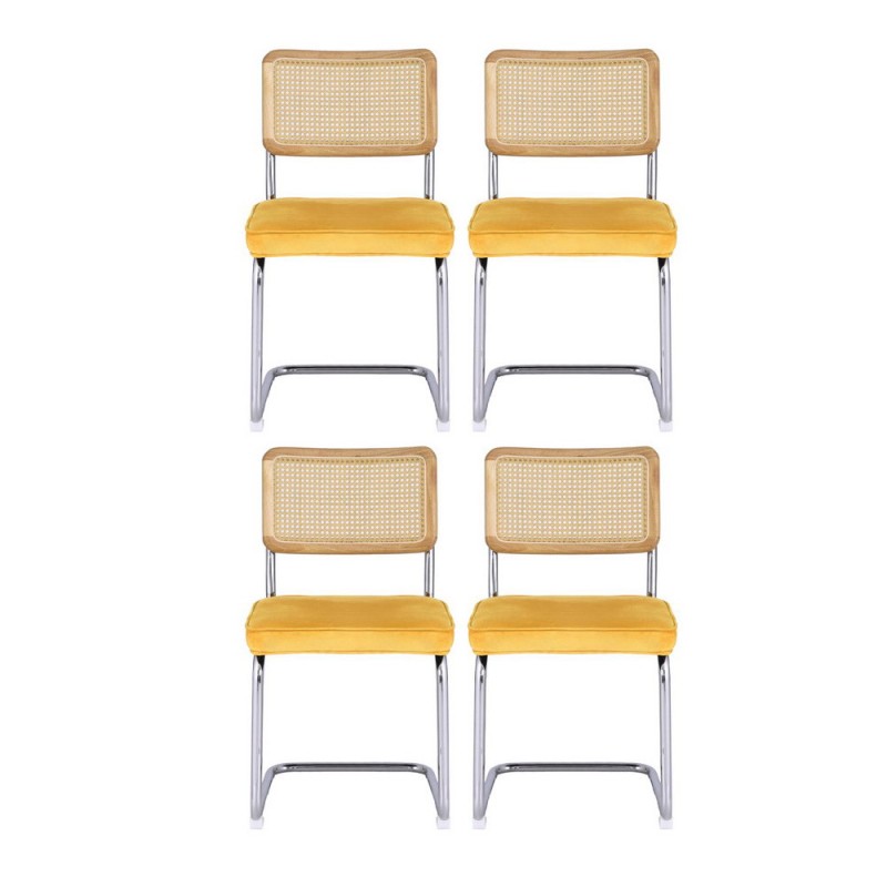 Elevate your dining space with the Artiss Felix Dining Chair Set of 4. These chairs feature a cantilevered stainless-steel frame and rounded edges for a modern and elegant look. The durable rubberwood frame and woven PE rattan backrest ensure comfort and style, while the velvet padded seat with high-resilience foam promises plush seating. Anti-slip feet provide stability, and easy assembly means you can enjoy these chairs quickly. Upgrade your dining area with the Felix Dining Chair for a blend of comfort and sophistication. Includes a 1-year warranty.