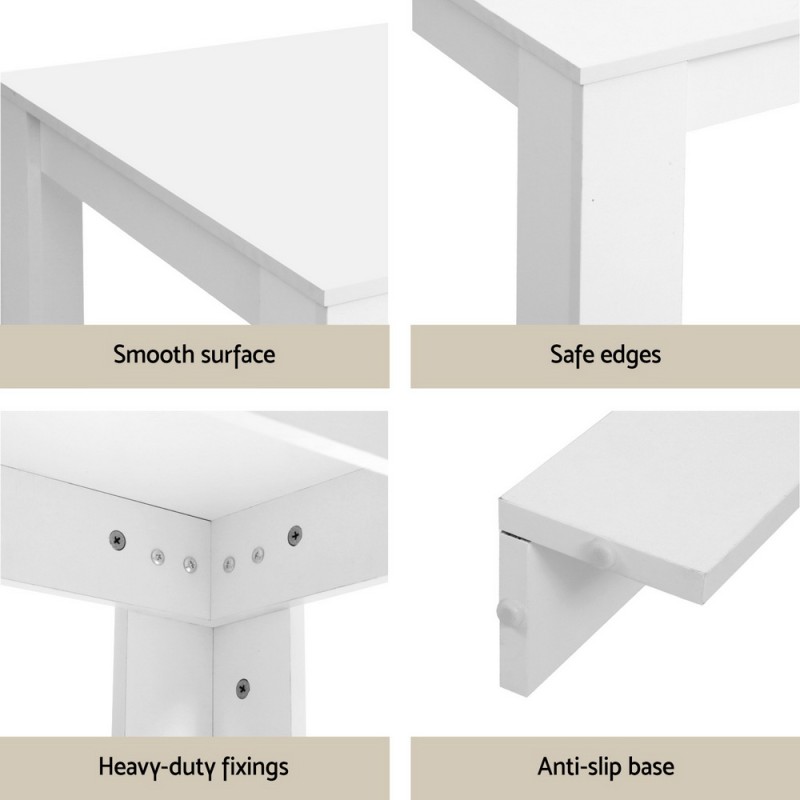 The Artiss Dining Table and 4 Chairs Set is the perfect blend of contemporary style and everyday durability. Featuring a sturdy 15mm particle board table with a smooth melamine finish and four cushioned PP chairs with steel legs, this set offers comfort, reliability, and easy maintenance. Its clean white design complements any decor, while anti-slip bases and reinforced fixings ensure lasting stability. Easy to assemble and built to last, this set is ideal for family meals or gatherings. Enjoy peace of mind with a 1-year warranty.