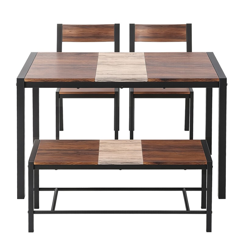 Maximise style and space with the Artiss Dining Table and Chairs Set of 4. Perfect for kitchens, small apartments, or offices, this set includes a spacious tabletop, two stable chairs, and a comfortable bench to seat four. Featuring a rustic brown, beige, and black finish, it blends contemporary aesthetics with functionality. Built with a powder-coated metal tube frame and durable steel fixings, it's designed for longevity. Its versatile table can double as a modern desk. Easy to assemble and maintain, this set offers a perfect balance of practicality and elegance.