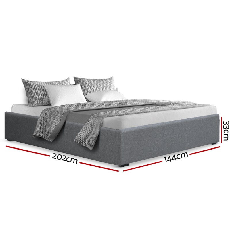 Experience the perfect blend of style and functionality with the Artiss Toki Double Size Gas Lift Bed Frame. Upholstered in premium grey linen fabric and padded with high-density foam, this elegant frame features a sturdy steel-reinforced structure and wooden arched slats for superior support. The innovative gas lift base reveals generous under-bed storage, making it ideal for decluttering your bedroom. Designed to fit a standard double mattress, the Toki bed frame is the smart solution for modern Australian homes.