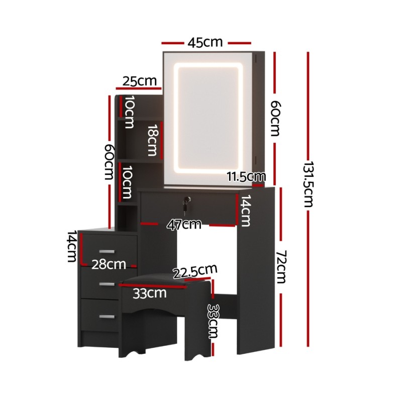 - LED dressing table with 3 colour lighting options