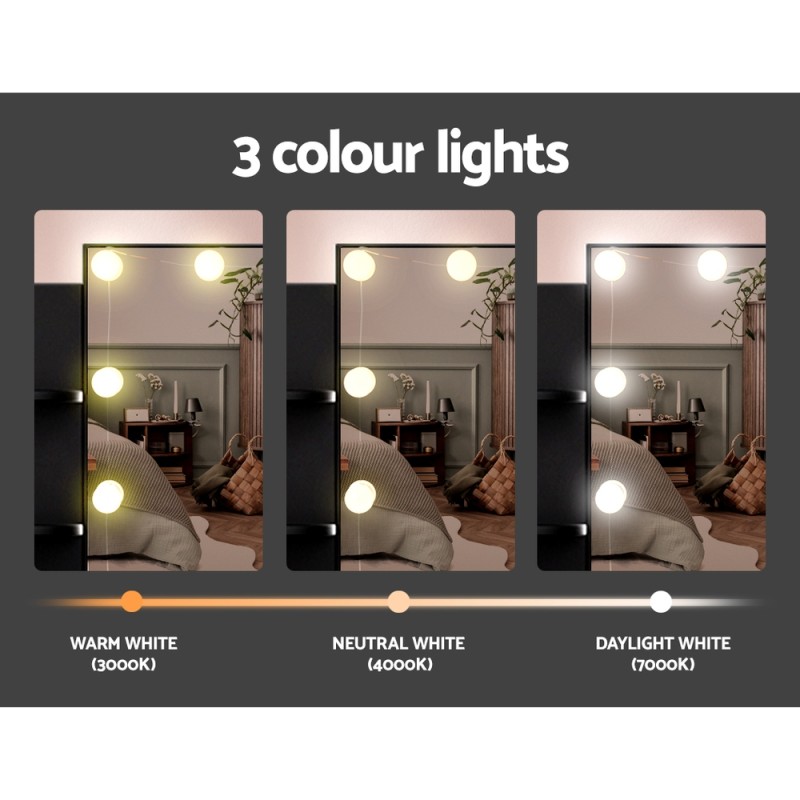 Feel like a star with the Artiss Dulcea Dressing Table. Designed for effortless beauty routines, it features a Hollywood-style mirror surrounded by LED bulbs offering three colour settings. Crafted from quality MDF with a melamine finish, it boasts open shelves for display and two smooth-opening drawers for essentials. A foam-padded PU leather stool ensures comfort and tucks away neatly. Easy to assemble and maintain, it's a chic addition to any room.
