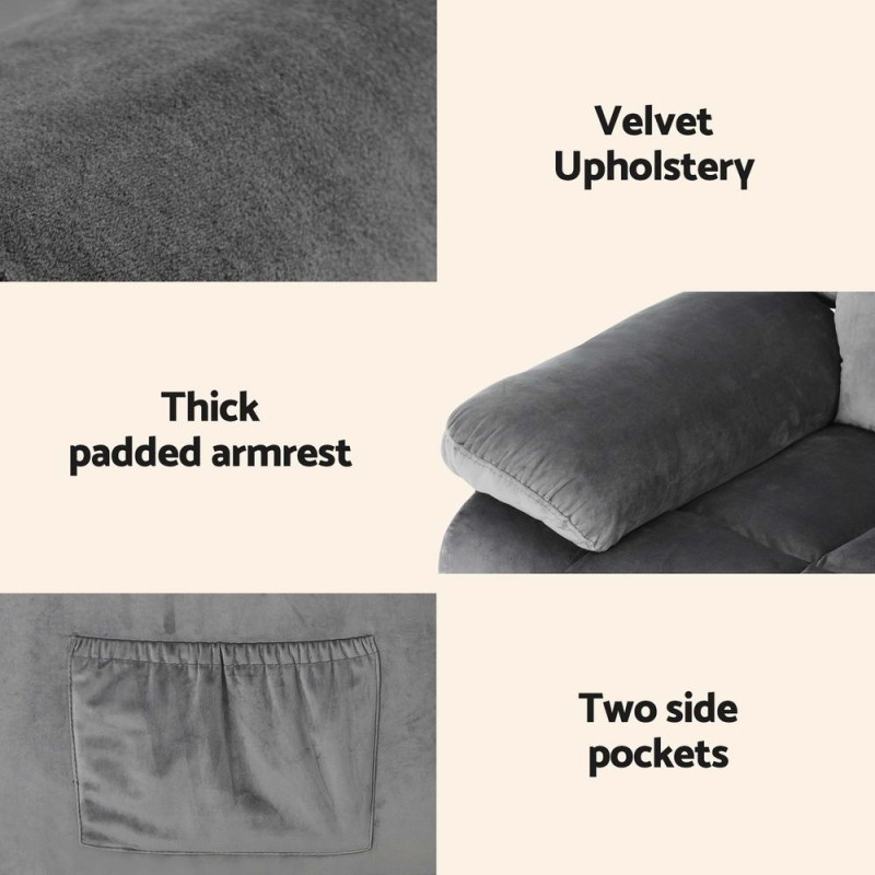 Experience ultimate relaxation with the Artiss Recliner Chair. Indulge in the luxury of its 8-point massage and 2-point heating functions, perfect for unwinding after a long day. The plush velvet upholstery and high-resilience sponge padding ensure unparalleled comfort, while a sturdy steel base supports up to 150kg. Customise your comfort with a manually adjustable backrest, multi-angle tilt, and a footrest. The chair features ultra-wide armrests, side pockets for essentials, and a convenient remote control.