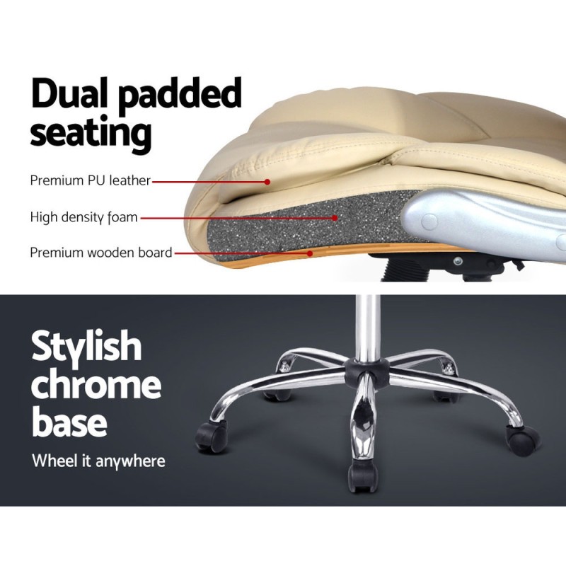 Experience unparalleled comfort and sophistication with the Artiss Kea Executive Office Chair. Crafted in premium beige PU leather, its S-shape high back, built-in lumbar support, and plush headrest offer ergonomic excellence for long hours at your desk. Adjustable features including tilt, gas lift height, 360° swivel, and retractable padded armrests ensure personalised support. Finished with stylish chrome and smooth castor wheels, this chair brings executive style and superior functionality to any workspace.