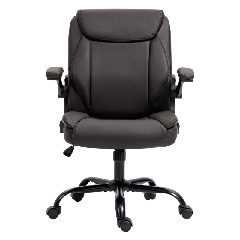 Transform your workspace with the Artiss Chastine Executive Office Chair in Brown. Designed for ultimate comfort, this chair features a contoured high-back, premium PU leather, and high-density foam padding. With a sturdy wood frame, adjustable height, 360° swivel, and flip-up armrests, it offers style and functionality. Easy to clean and quick to assemble, it's perfect for any home office or study. Experience comfort and productivity like never before with Artiss.