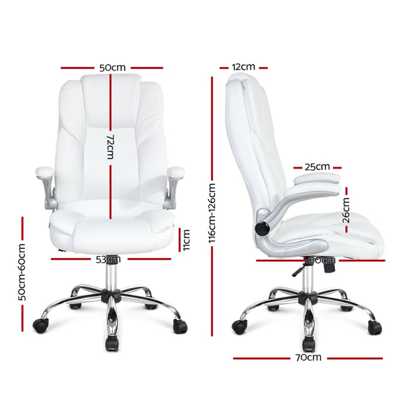 Achieve new heights of productivity and comfort with the Artiss Kea Executive Office Chair in White. Crafted with premium PU leather and an S-shaped high back, this chair delivers exceptional lumbar support and plush seating. Enjoy the flexibility of tilt and gas lift height adjustments, retractable padded armrests, and a supportive headrest. With a 360-degree swivel seat and smooth castor wheels, you can move seamlessly through your workspace. Elevate your office aesthetic and performance with Artiss—where success meets sophistication.