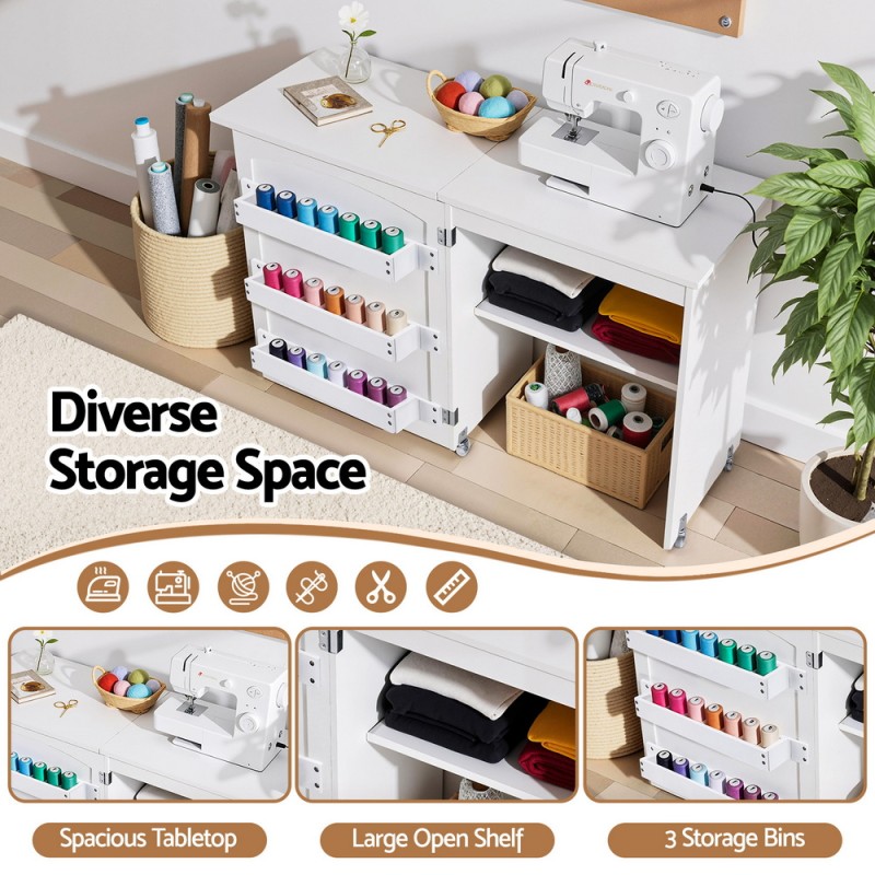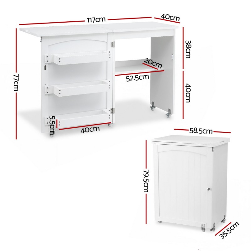 Elevate your creative endeavours with the Artiss Folding Sewing Table, a masterful blend of functionality and style. This multi-functional craft station is designed to fit seamlessly into any living space, transforming from a compact unit to a generous workspace with ease. Boasting a spacious tabletop, three storage bins, and an open shelf, it offers ample room for all your crafting essentials. Equipped with five smooth-rolling wheels, including two lockable ones, it promises both mobility and stability. Crafted from high-quality materials with durable metal hinges and a magnetic door holder, it ensures longevity and convenience. Perfect for sewing, crafting, or as a home office solution, this table is as versatile as your creativity demands.