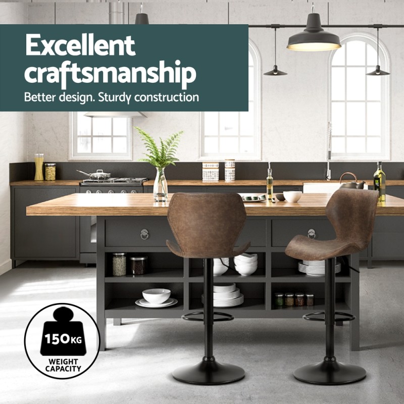 Elevate your space with Artiss 4x Frawley Bar Stools. These vintage leather stools blend elegance and modernity, perfect for any room. With PU leather, soft foam padding, and a 360-degree swivel, they offer style and comfort. The adjustable height and sturdy base ensure durability, while the floor protector prevents scratches. Available in brown, these stools are the ideal addition to your décor. Experience timeless design and quality with Artiss.