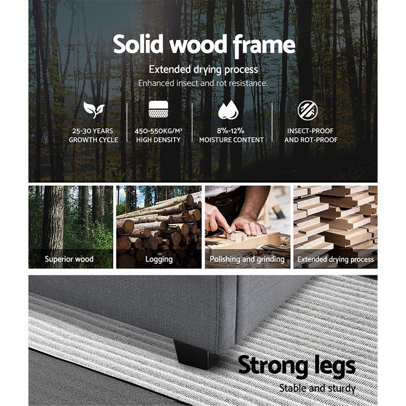 - Material: Faux linen fabric, foam, wood