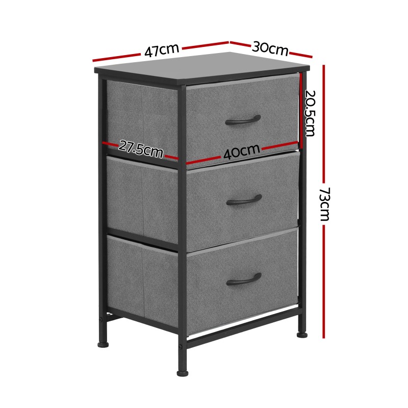 The Artiss Chest of 3 Drawers Storage Dresser Tallboy in Grey is a stylish and functional storage solution for any room. Featuring three spacious drawers, it offers ample space for clothing or living room essentials. The sturdy MDF tabletop is ideal for displaying decorative items, while the durable metal tube frame ensures long-lasting use. The breathable non-woven fabric lining keeps items organised and protected, and smooth ABS handles allow for easy operation. Adjustable plastic feet provide stability on uneven floors, and a wall attachment offers added safety. With a high weight capacity and low-maintenance surface, this chest combines modern design with everyday convenience.