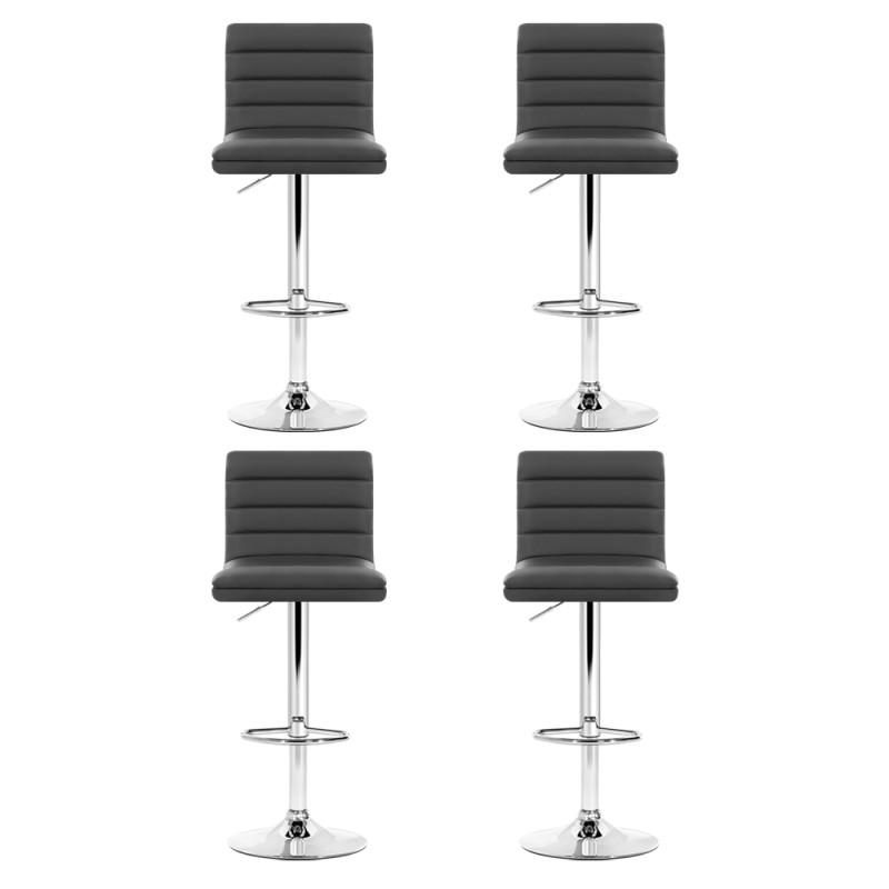 Elevate your dining and kitchen space with the Artiss Set of 4 PU Leather Lined Pattern Bar Stools in Grey and Chrome, where style meets unparalleled comfort. These stools are upholstered in premium faux leather and feature an extra thick foam padded seat for the ultimate seating experience. Enjoy the ease of a 360-degree swivel seat and adjust the height effortlessly with the SGS-tested gas lift. The corrosion-resistant chrome finish and semicircular footrest add a touch of sophistication, while the steady 41cm base includes a floor protector to keep your floors pristine. Perfect for any modern home, these bar stools offer both elegance and practicality.