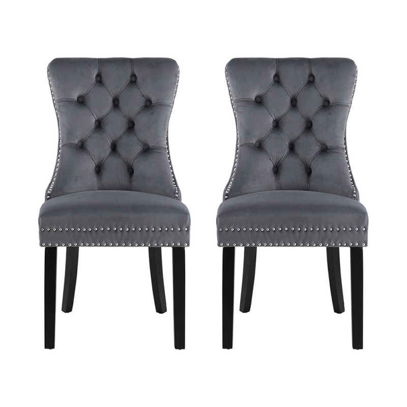 Elevate your dining area with the Artiss Set of 2 Dining Chairs in grey velvet. Their plush velvet upholstery, button-tufted backrests, and elegant rivet edging create a sophisticated statement in any dining room. Enjoy superb comfort with cushioned, high-resilience foam backrests, while sturdy rubberwood legs and anti-slip feet ensure stability and floor protection. Blending timeless style with practical design, these chairs are the perfect touch for modern and classic settings alike.