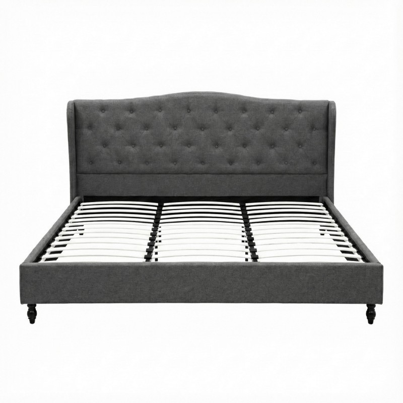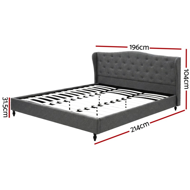 Elevate your bedroom with the Artiss King Bed Frame, a perfect blend of modern elegance and robust functionality. Featuring a sophisticated wingback headboard upholstered in luxurious grey linen, this bed frame offers both style and comfort with its high-density foam padding. The sturdy steel construction, reinforced bars, and heavy-duty connectors ensure durability, while the wooden arched slat base and adjustable centre support provide exceptional stability. Designed to accommodate standard King mattresses, this bed frame is a chic addition to any contemporary bedroom. Overall dimensions are 214x196x104cm.