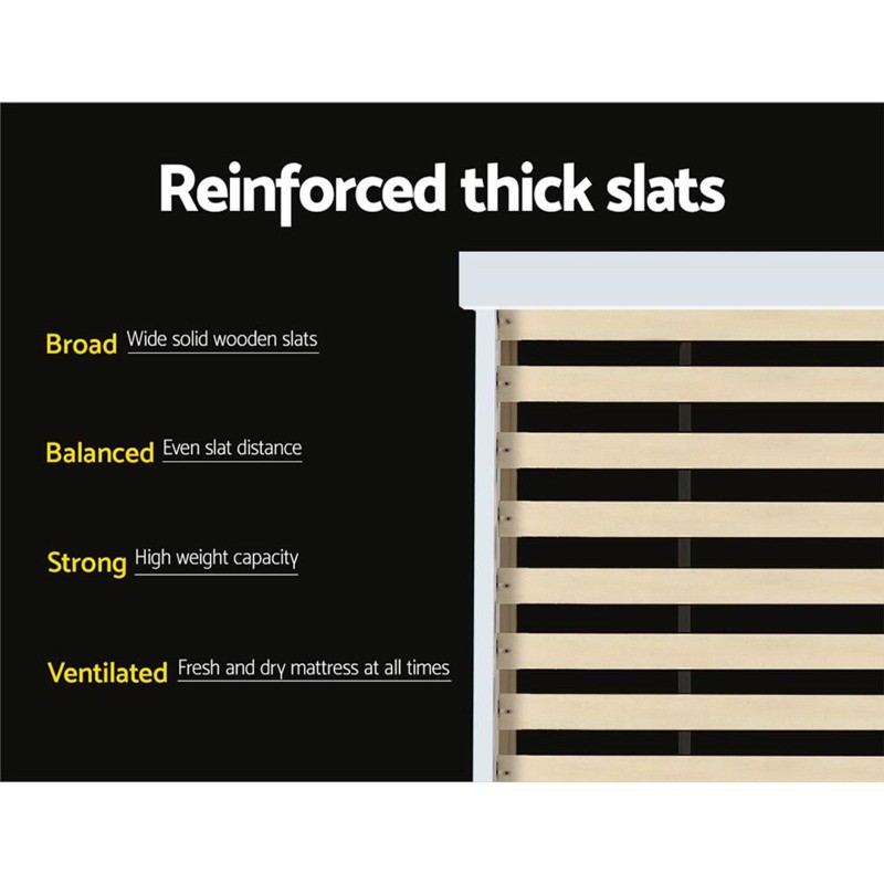 Transform your bedroom with the Artiss King Single Wooden Timber Bed Frame, a perfect blend of elegance and functionality. Crafted from natural pine wood, this bed frame is designed for both children and adults, offering a stable and sturdy construction with a solid plywood slated base and reinforced supports. Its sleek white finish is both eco-friendly and non-toxic, ensuring a safe sleeping environment. The headboard features three open compartments and a convenient fold-down shelf, providing ample storage space alongside the optional trundle drawers beneath. With smooth edges and heavy-duty steel fixings, this bed frame promises durability and style, accommodating a standard Australian single mattress with ease.