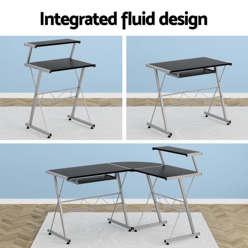 Transform your workspace with the Artiss Elle Computer Desk. Designed with a clever L-shaped configuration, this integrated 3-piece desk maximises space and efficiency, making it perfect for corners and compact areas. The durable particle board desktops, robust X-shape powder-coated steel legs, and steel slats ensure lasting stability. Featuring a pull-out keyboard tray, top shelf, and flexible right or left assembly, it’s ideal for study or work. Floor protectors safeguard your surfaces, while the spacious design elevates productivity and organisation.