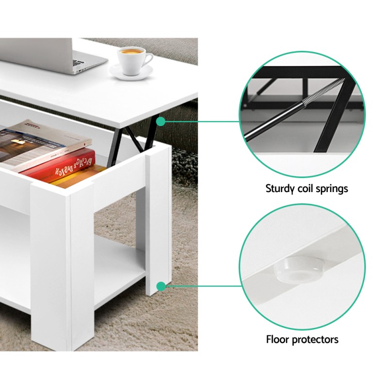 Elevate your living space with the Artiss Lift-top Coffee Table in sleek white. This versatile piece not only offers a stylish aesthetic but also practical functionality with its lift-up top revealing a hidden storage compartment. Built with 15mm thick particle board and heavy-duty steel fixings, it supports up to 15kg on the tabletop and an additional 20kg inside. The stable construction features anti-scratch foot pads to protect your floors, while the under-shelf storage allows for extra organisation. Finished with SGS-certified non-toxic painting, this table is as safe as it is stylish. Assembly is required for this space-saving gem.