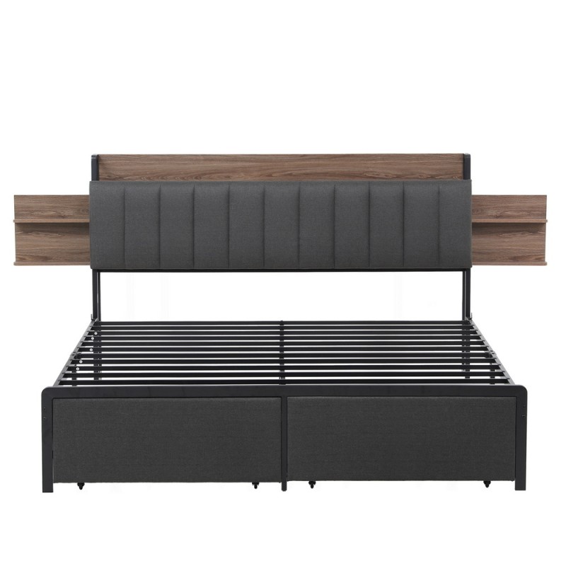 Transform your bedroom into a modern haven with the Artiss Metal Bed Frame King Size, featuring a sleek grey faux linen finish that enhances contemporary decor. The padded, tufted headboard invites you to relax, while the innovative two-tier hidden shelving keeps essentials neatly stored. Built with a durable MDF and steel frame, this bed ensures lasting stability, while steel-reinforced slats prevent mattress sagging. Enjoy the convenience of a bedside power station with 2 AC outlets, USB, and Type-C ports, perfect for charging all your devices. Plus, two spacious storage drawers on wheels offer ample space for your belongings, making this bed both stylish and practical. Mattress sold separately.