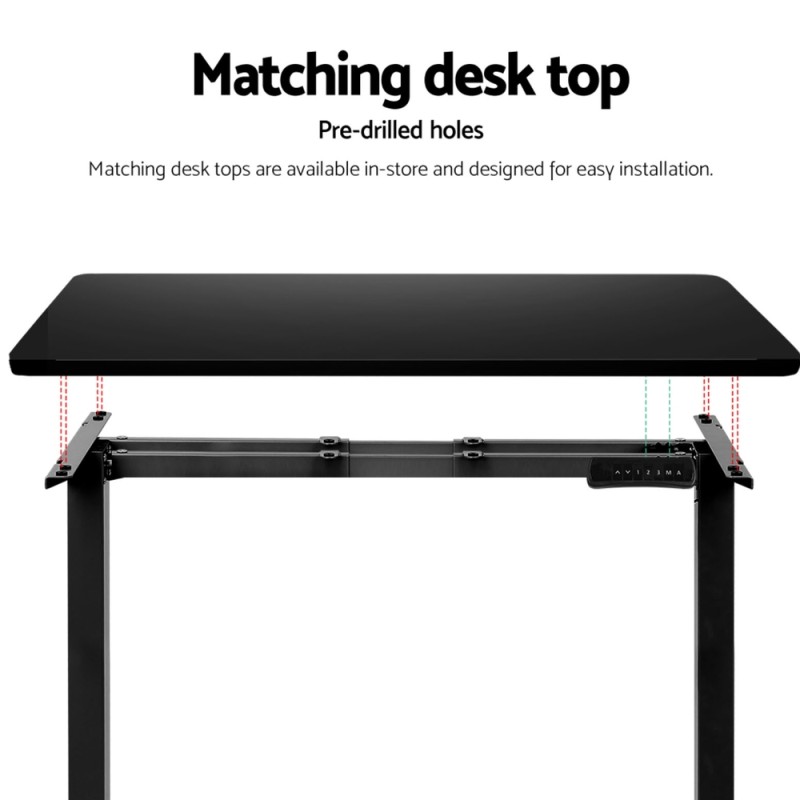Transform your workspace with the Artiss Standing Desk Frame. Designed for healthier work habits, this motorised frame lets you switch between sitting and standing effortlessly. Featuring dual motors for smooth, quiet adjustments, it supports up to 100kg and fits desktops 120-180cm long. With a digital control panel, save up to three preset heights and set reminders to move. Built to last with a powder-coated finish and adjustable foot pads for stability, it's your key to improved posture and productivity.