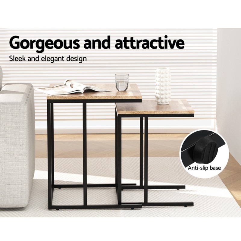 Elevate your space with the Artiss Nesting Coffee Table Set of 2 in Walnut. These industrial-inspired tables offer versatile style and functionality. Use them separately or nest the smaller under the larger for a sleek look. With a natural woodgrain top and powder-coated steel legs, they blend seamlessly with any décor. The C-shape design allows easy integration with other furniture, while anti-scratch protectors keep floors pristine. Enjoy sturdy construction and a one-year warranty.