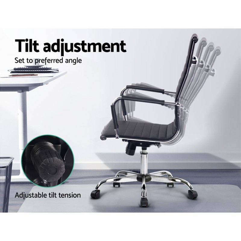 Elevate your workspace with the Artiss Office Chair, a perfect blend of modern aesthetics and functional design. Crafted with sleek faux leather upholstery, this chair exudes sophistication. Its high back provides exceptional support, while the 360-degree rotatable seat ensures effortless manoeuvrability. Customise your comfort with height and tilt adjustments, and enjoy the convenience of a chrome-finished rack for accessories. The sturdy chrome base with five wheel castors offers seamless mobility, making it an ideal choice for home or office settings. Redefine your seating experience with Artiss.