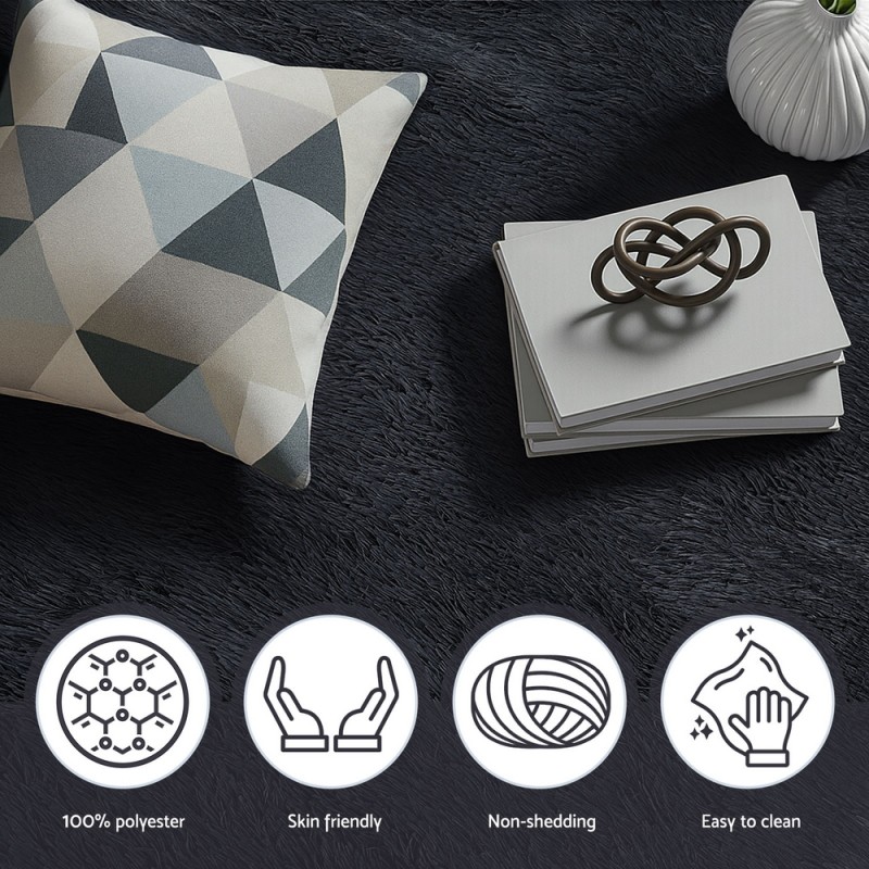 Transform your living space with the Artiss Floor Rug, a luxurious addition to any room. This plush, shaggy rug in an elegant black finish offers a deep, soft pile with built-in foam cushioning, promising unrivalled comfort underfoot. Its contemporary design complements any decor, while the anti-slip granule backing ensures safety. Made from durable, wear-resistant polyester, this rug is naturally sound-absorbing, skin-friendly, and non-shedding, making it a perfect choice for cosy living rooms or bedrooms. Easy to spot clean, it maintains its beauty effortlessly.