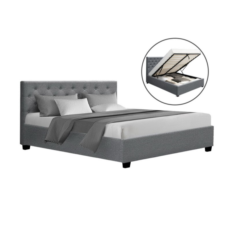 Elevate your sleeping experience with the Artiss Vila Queen Size Bed Frame. This exquisite bed frame is wrapped in premium faux linen fabric, featuring a plush tufted headboard that exudes elegance. Beyond its luxurious appearance, the bed offers a gas lift storage system, revealing ample space beneath the wooden arched slat base—perfect for keeping seasonal clothes and extra bedding neatly tucked away. Built with a reinforced steel frame, heavy-duty metal connectors, and an adjustable centre support beam, it ensures stability and comfort. Drift off to sleep knowing you've chosen a bed that combines style, functionality, and robust construction.