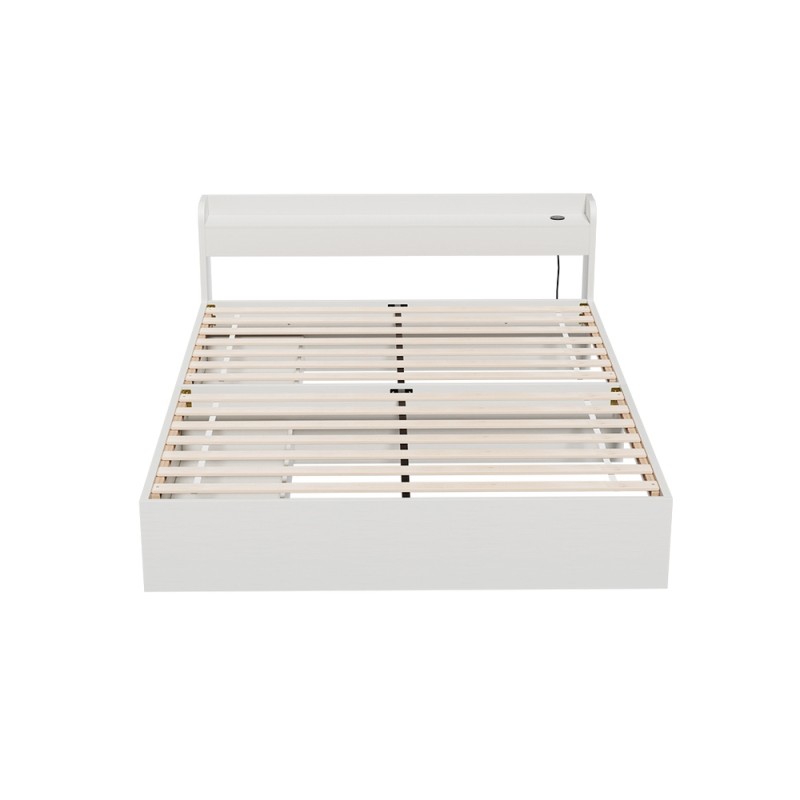 Experience restful nights with the Artiss Aura Queen Size Bed Frame. Expertly crafted from thick 15mm and 18mm particleboard with sturdy 12mm plywood slats, this bed offers superior support and durability. The wide storage headboard keeps essentials within reach, while two drawers on smooth castor wheels provide versatile storage. Power up your devices effortlessly with two built-in USB charging ports and a 200cm cable. With a sleek white finish, smooth headboard edges, and space beneath for extra storage, Artiss Aura redefines bedroom convenience and style.
