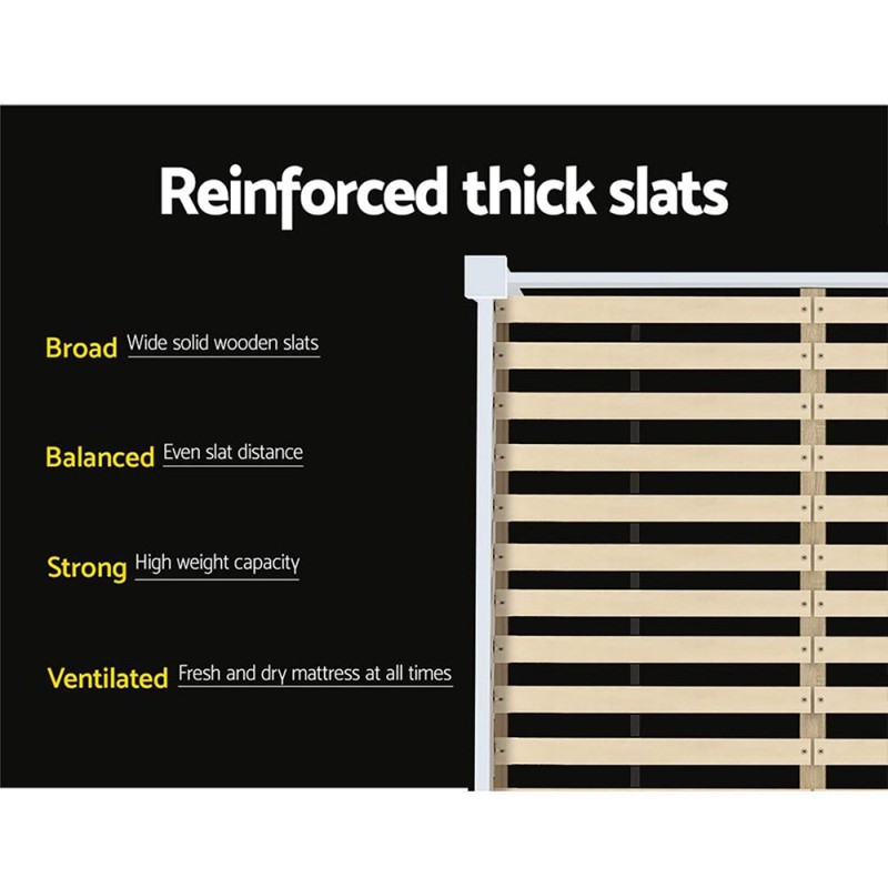 Introducing the Artiss Bed Frame Queen Size Wooden White RIO, a timeless addition to any bedroom decor. Crafted from solid pine wood, this bed frame combines durability with elegance, making it perfect for both young and old. Its robust construction features a durable plywood slated base, reinforced angled brackets, and heavy-duty steel fixings for long-term support. The stylish headboard and smooth edges enhance its aesthetic appeal, while the non-toxic, eco-friendly white finish ensures safety. With ample under-bed space for optional trundle drawers, this bed frame offers both style and functionality, easily accommodating standard Australian queen mattresses.