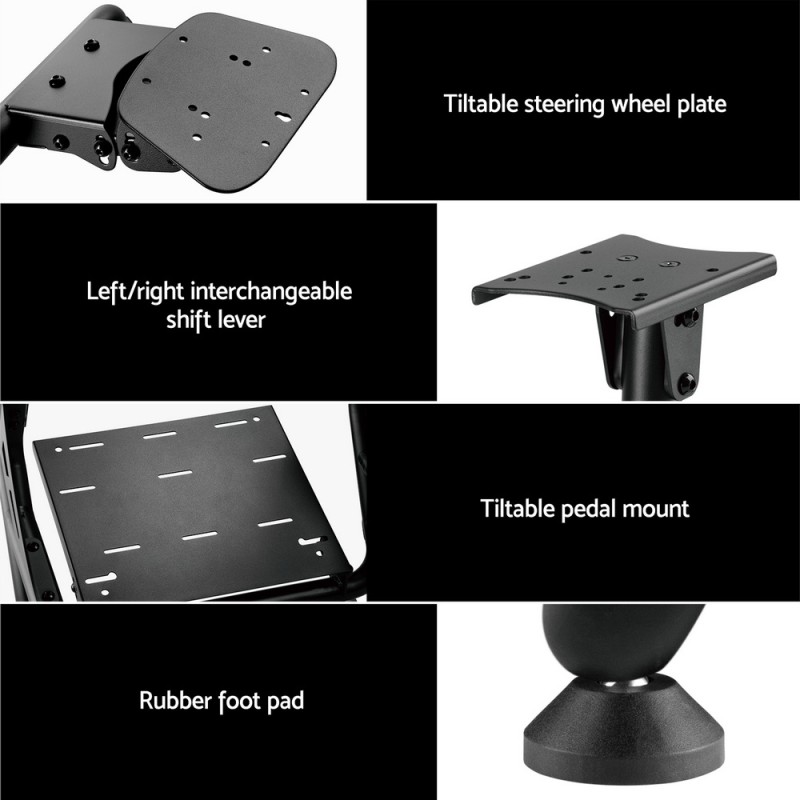 Experience the ultimate thrill of racing with the Artiss Racing Simulator Cockpit. Crafted from premium steel and PVC leather, this cockpit delivers strength, stability, and a realistic racing experience. Adjust the backrest, steering wheel plate, gear shifter, and pedal mount to your ideal position. Compatible with most modern wheels, shifters, and pedals, it features easy assembly with pre-drilled mounting points. Rubber foot pads protect your floors, ensuring everything stays in place. Elevate your racing game today!