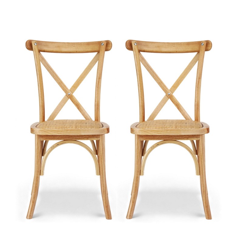 Elevate your dining experience with the Artiss 2x Dining Chairs, where coastal charm meets natural elegance. Crafted from solid Rubber Wood, these chairs promise durability and style, ideal for the versatile Aussie lifestyle. The breathable rattan seat paired with an ergonomic curved backrest offers unparalleled comfort during long meals. Reinforced with a sturdy X-shape support, these chairs are built to last. Their natural wood finish effortlessly complements any decor, from rustic farmhouse to modern Scandi. Perfect for kitchens, lounges, cafés, and protected outdoor spaces, these chairs are easy to maintain, allowing you more time to enjoy your surroundings. Note: Each chair's unique colour and wood grain adds a one-of-a-kind touch to your space.