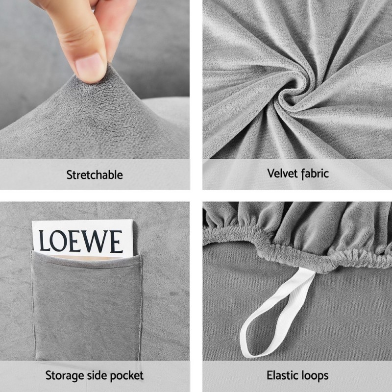 Transform your recliner into a cosy haven with the Artiss Recliner Chair Cover. Made from ultra-soft, stretchy velvet, this cover fits like a glove, offering both comfort and protection. Anti-slip foam strips and an elastic bottom keep it secure, while the side pocket adds convenience. Easy to install and machine washable, it's perfect for any recliner style. Available in three colours, this cover is a stylish and practical addition to your home. Don't forget to cheque the size guide before purchasing!