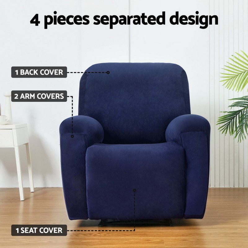 Transform your recliner into a cosy haven with the Artiss Recliner Chair Cover in Navy. Made from ultra-soft, stretchy velvet, this cover hugs your chair for a perfect fit. Say goodbye to slips with anti-slip foam strips and an elastic bottom. Easy to clean and maintain, just pop it in the washing machine. With a side pocket for convenience and a design that suits various recliner styles, it's both practical and stylish. Enjoy a 1-year warranty for peace of mind.