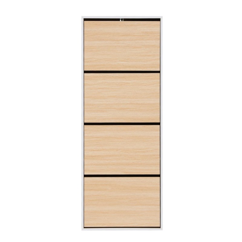 Organise your footwear collection with the Artiss Shoe Rack Cabinet, a sleek and functional storage solution designed to accommodate up to 24 pairs of shoes. Standing at 160cm, this cabinet features 4 flip-up drawers and 8 tier shelves, including adjustable middle shelves for customised storage. Crafted from premium particle board with a durable melamine finish, it is built to endure the wear and tear of daily life. The high weight capacity and wall attachment kit ensure stability and safety, making it an ideal addition to any entryway. Transform cluttered spaces into organised havens with this versatile shoe rack.