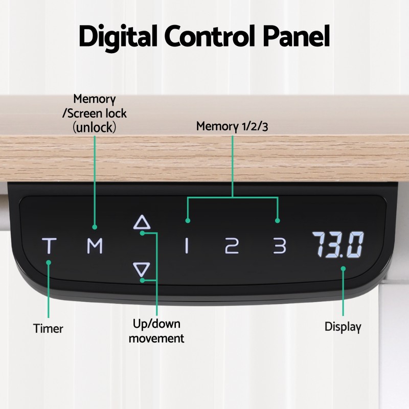 Experience the ultimate in ergonomic workspace solutions with the Artiss Standing Desk Motorised Touch Control Electric Oak 140CM. Designed to enhance your posture and reduce fatigue, this desk features a stepless height-adjustable frame, allowing you to effortlessly switch between sitting and standing. The user-friendly touch control panel lets you save up to three height presets, while a reminder mechanism optimises your position changes. With smooth, ultra-quiet motor operation, integrated cable management, and handy accessories such as a cupholder and headphone hook, this desk keeps your workspace tidy and efficient. Easy to set up, it's perfect for boosting productivity and comfort.