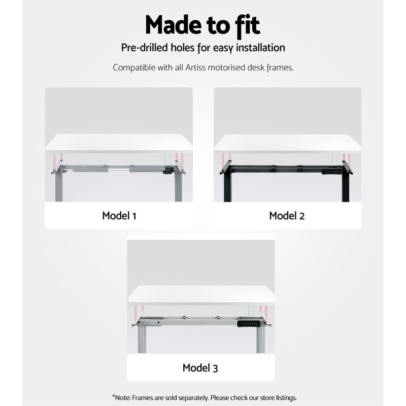 Enhance your workspace with the Artiss Standing Desk Top in White, designed to complement our motorised desk frames. Boasting a 2.5cm thick particle board with smooth, rounded edges for safety, this desk top is as durable as it is stylish. Its anti-scratch, easy-to-clean matt finish showcases a beautiful wood grain. Installation is a breeze with pre-drilled holes, and it's available in four colours to suit your decor. Eco-friendly and practical, this desk top is built to last. Enjoy a 1-year warranty with your purchase.