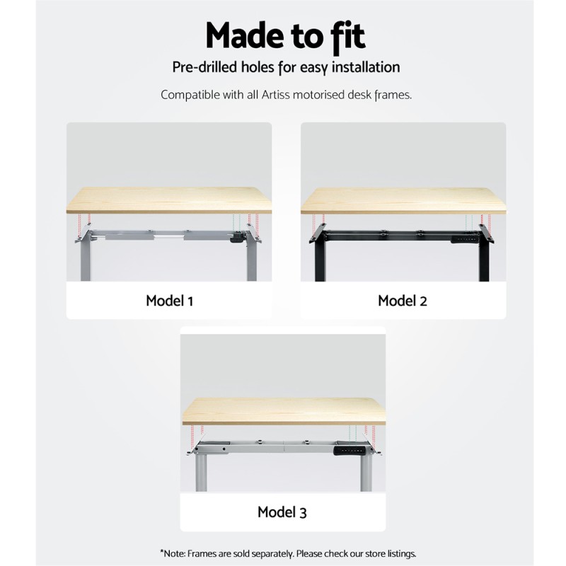 Enhance your workspace with the Artiss Standing Desk Top in White Oak. Designed to pair seamlessly with Artiss motorised desk frames, this 120cm desk top combines durability with style. Its 2.5cm thickness ensures longevity, while the smooth rounded edges offer safety. The anti-scratch, easy-clean surface maintains its pristine look. With pre-drilled holes, setup is a breeze. Choose from four stunning colours, each showcasing a contemporary matt finish and natural wood grain.