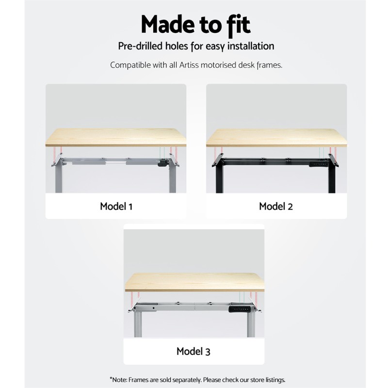 Enhance your workspace with the Artiss Standing Desk Top in White Oak. Designed to pair seamlessly with our motorised desk frames, this 140cm desk top is both durable and stylish. Its 2.5cm thickness ensures longevity, while smooth, rounded edges provide safety. The anti-scratch finish and easy-clean surface make maintenance a breeze. With pre-drilled holes, installation is hassle-free. Available in a contemporary matt finish with a natural wood grain, it offers both practicality and aesthetic appeal.