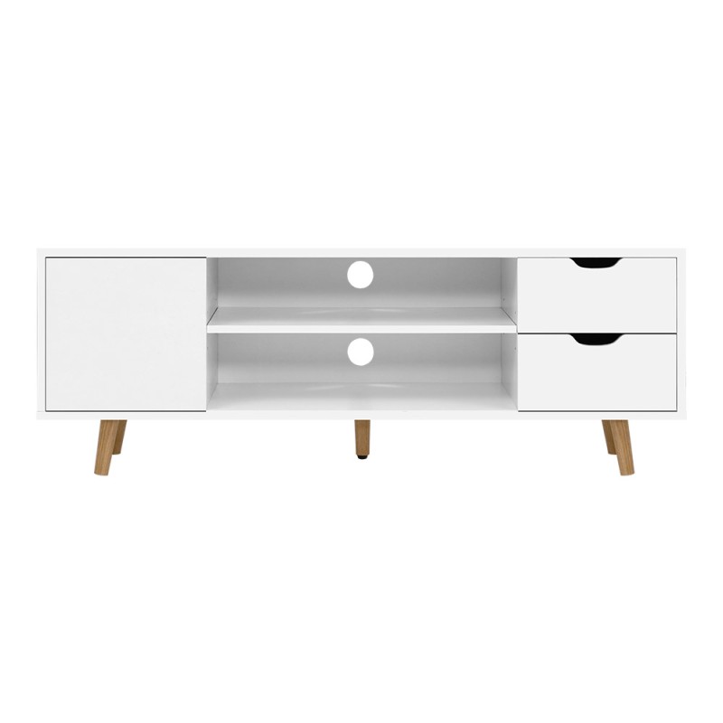 Embrace the charm of Scandinavian design with the Artiss Larin TV Cabinet Entertainment Unit. This stylish piece combines simplicity with functionality, featuring a sleek white and natural wood finish. With ample storage, including two open shelves, a cabinet, and two drawers, it’s both practical and elegant. The iconic splayed pine legs add a touch of nostalgia. Pair it with the Larin Coffee Table for a cohesive look. Easy to assemble and backed by a 1-year warranty, it’s a must-have for any modern Aussie home.