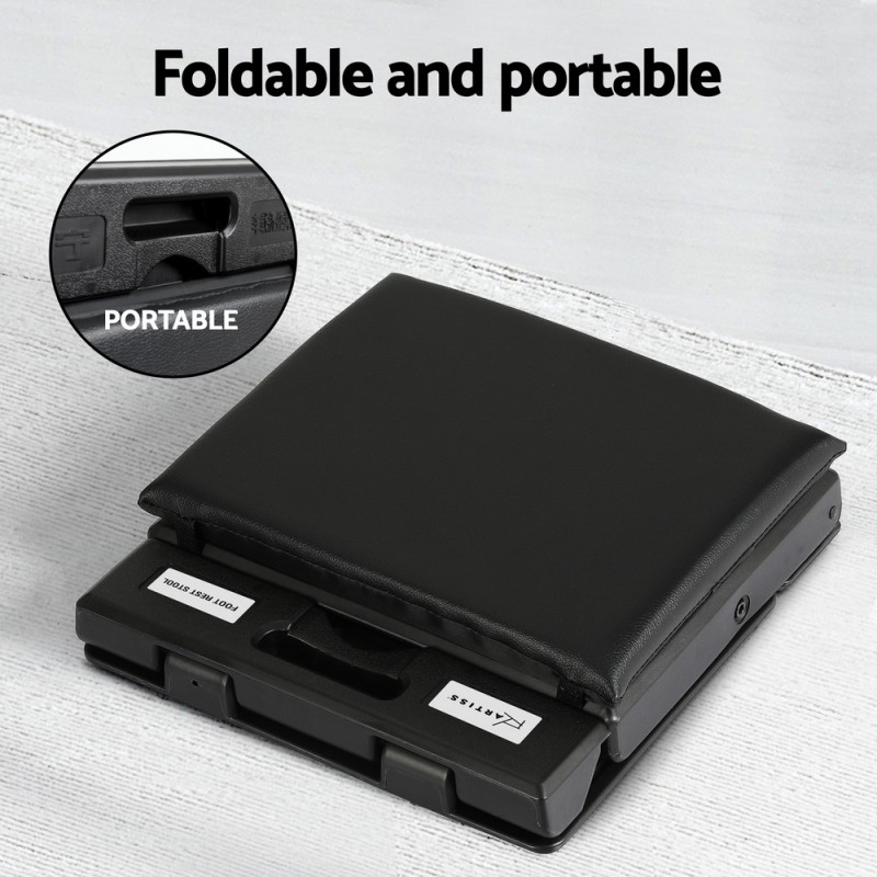 Enhance your workspace comfort with the Artiss Foot Rest Stool. Perfect for use under your desk, this ergonomic footrest elevates your feet to encourage better posture, reduce strain, and improve circulation. The sturdy metal frame supports up to 80kg, while adjustable height and angle settings let you find your ideal position. Enjoy a relaxing acupressure massage with the textured top, and add extra comfort with the removable soft leather pad. Its sleek, compact design fits seamlessly into any office for all-day support.