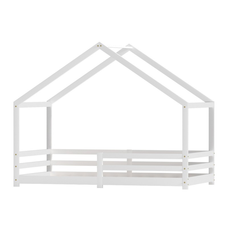 Introducing the Artiss Bed Frame Wooden Kids Single House Frame in White, a delightful addition to any child's bedroom. Crafted from solid pine wood, this charming house-shaped bed frame is designed for durability and safety, featuring smooth edges and SGS-tested non-toxic paint. Its robust construction includes thick plywood slats and reinforced bracket support, ensuring stability and a weight capacity of up to 150kg. Easy to clean and maintain, it fits a standard Australian Single mattress, making it a practical and stylish choice. Assembly is required, and the product comes with a 1-year warranty.